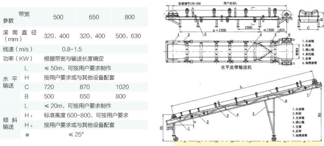 用途:帶式輸送機(jī)主要用來輸送顆粒或粉末狀固體,用于環(huán)保上主要用于輸送柵渣,脫水后的泥餅、泥沙等。