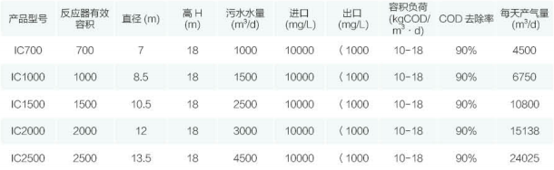 IC厭氧反應(yīng)器由于存在著強(qiáng)大的內(nèi)循環(huán)、傳質(zhì)效果好、生物量大、其容積負(fù)荷遠(yuǎn)比普通的UASB  反應(yīng)器高, 一般可高出3倍左右。處理高濃度有機(jī)廢水,當(dāng)COD 為10000-15000mg/L 時(shí),容積負(fù)荷率可達(dá)10-18CODm3·d。